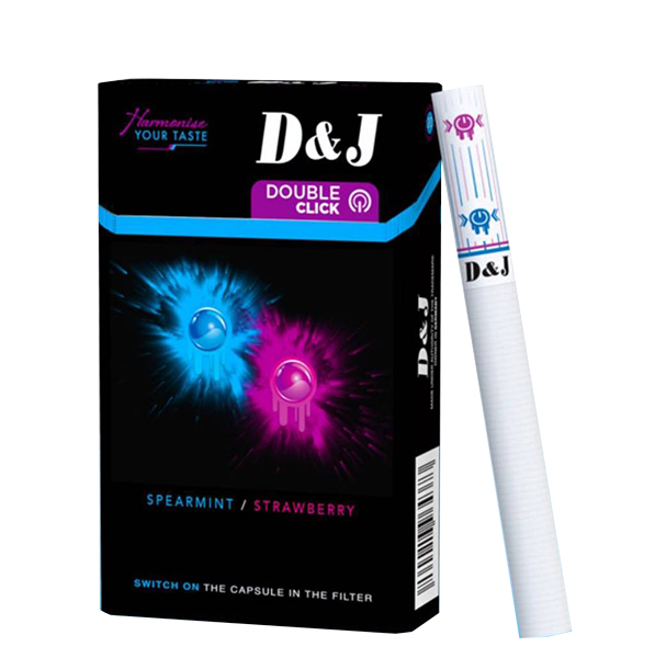 D&J Double Switch บุหรี่กลิ่นสตรอเบอร์รี่และสเปียร์มินท์ หอมหวานและเย็นสดชื่นในทุกคำ มวนใหญ่ 2 เม็ดบีบ